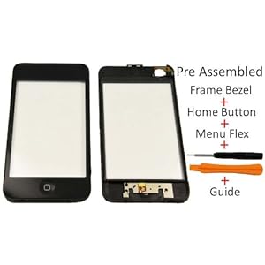Best replacement / repair part front frame top glass screen with digitizer / touch function built into the plastic chassis frame bezel along with the home button and menu flex cable pre-installed. As long your LCD display still display picture normal, and if you have a cracked glass then this is the only other part you'd need to repair the cracked screen in the most convenient, efficient method of this kit. Come with supporting tapes pre-installed on flex to make the digitizer flex much more stronger and more reliable. Compatible with iPod Touch 2nd Generation only.