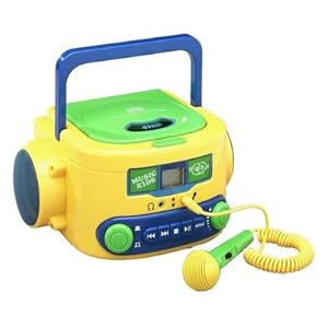 Children will feel like a real singer as they pick up the microphone and sing-a-long to CD's with the Karaoke feature on this music machine. Player features big buttons for easy use, microphone with On/Off switch, and four foot coil cable for Karaoke function. Operates on AC or eight C batteries (not included).